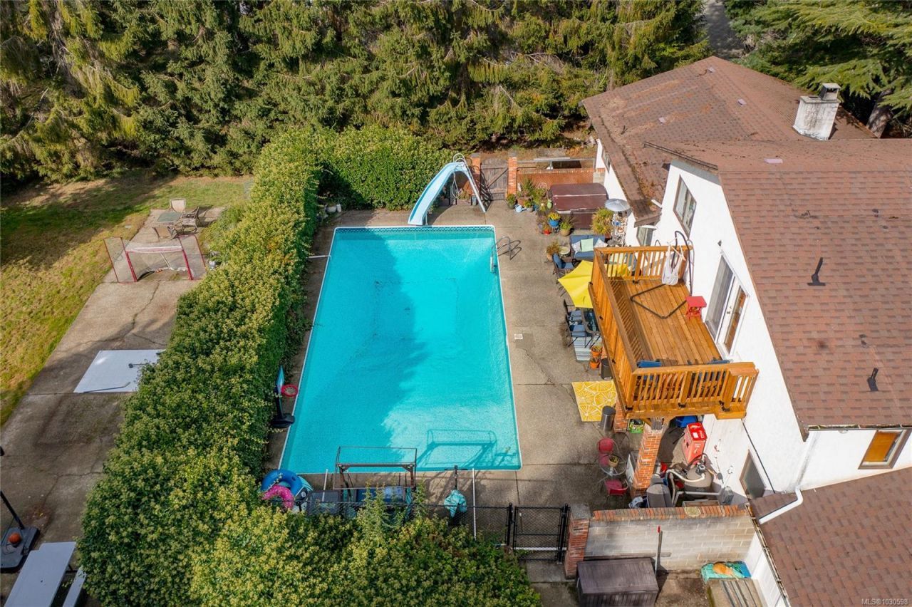 Country living par excellence. Minutes from the ocean as well as downtown LA and all that offers in brand new as well as West Shore legacy services and amenities. This totally flat two acre family (or hobby farm?) paradise offers so much; large home recently painted inside and with a new west facing deck off primary bedroom, in ground pool in west facing back yard party/bbq area also has a hot tub, massive play/sports areas in rear fields, wired three stall barn in midst of fully fenced rear section of lot that runs parallel to Galloping Goose Regional Trail, four beds on top floor, open concept family room on main leading to large newly...read more